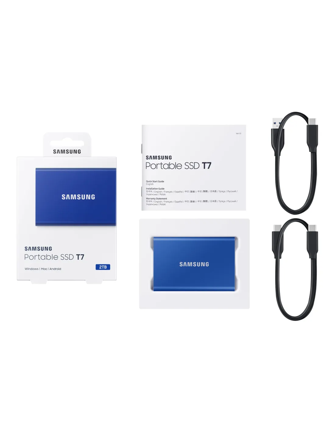 Portable SSD | T7 | 2000 GB | N/A " | USB 3.2 | Blue