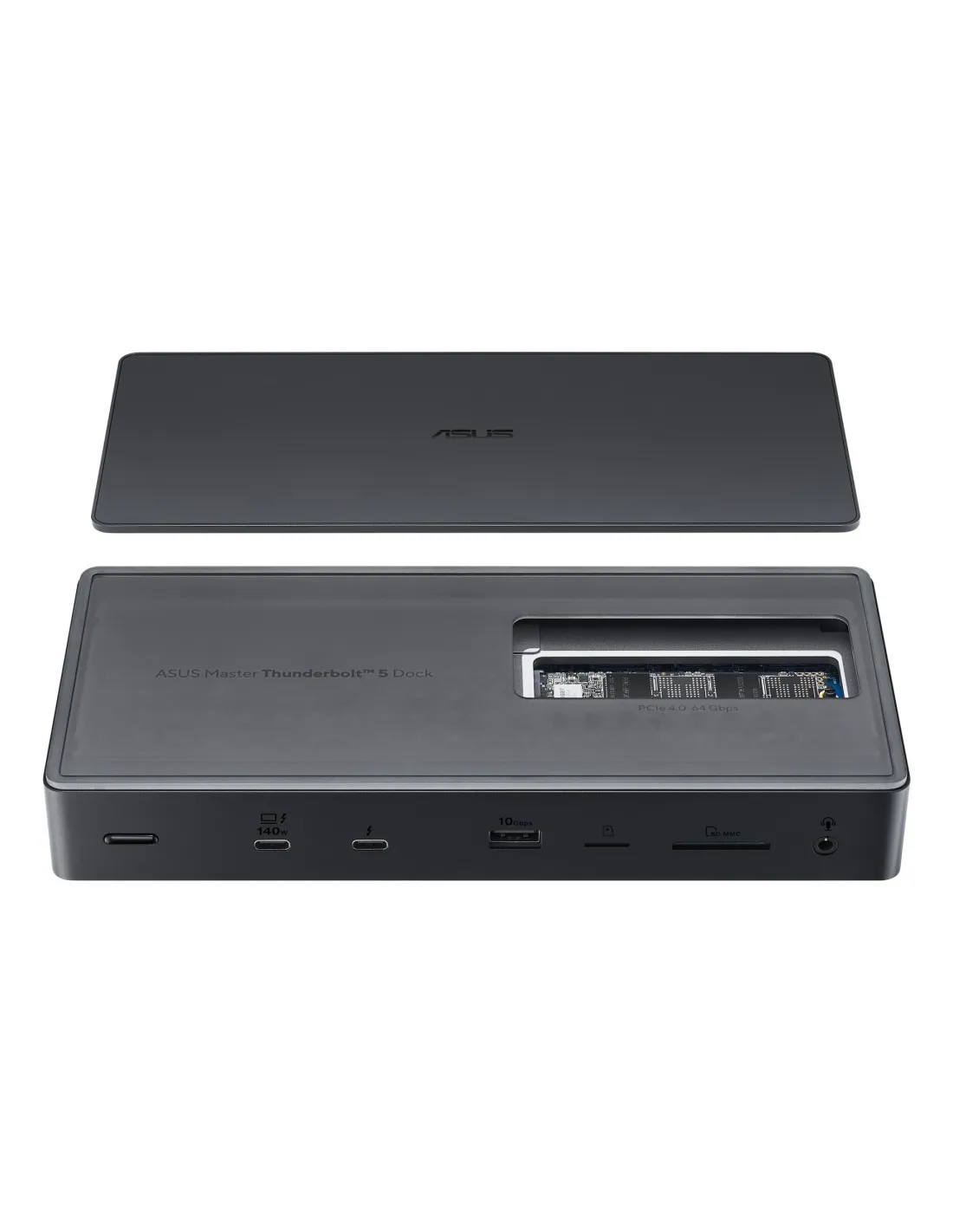 - ASUS MASTER THUNDERBOLT 5 DOCK DC510. CONNECTIVITY TECHNOLOGY: WIRED, HOST INTERFACE: THUNDERBOLT 5, USB POWER DELIVERY UP TO: 140 W. ETHERNET LAN DATA RATES: 2500 MBIT/S. PRODUCT COLOUR: BLACK, COMPATIBLE MEMORY CARDS: MICROSD (TRANSFLASH), SD, SUPPORTED