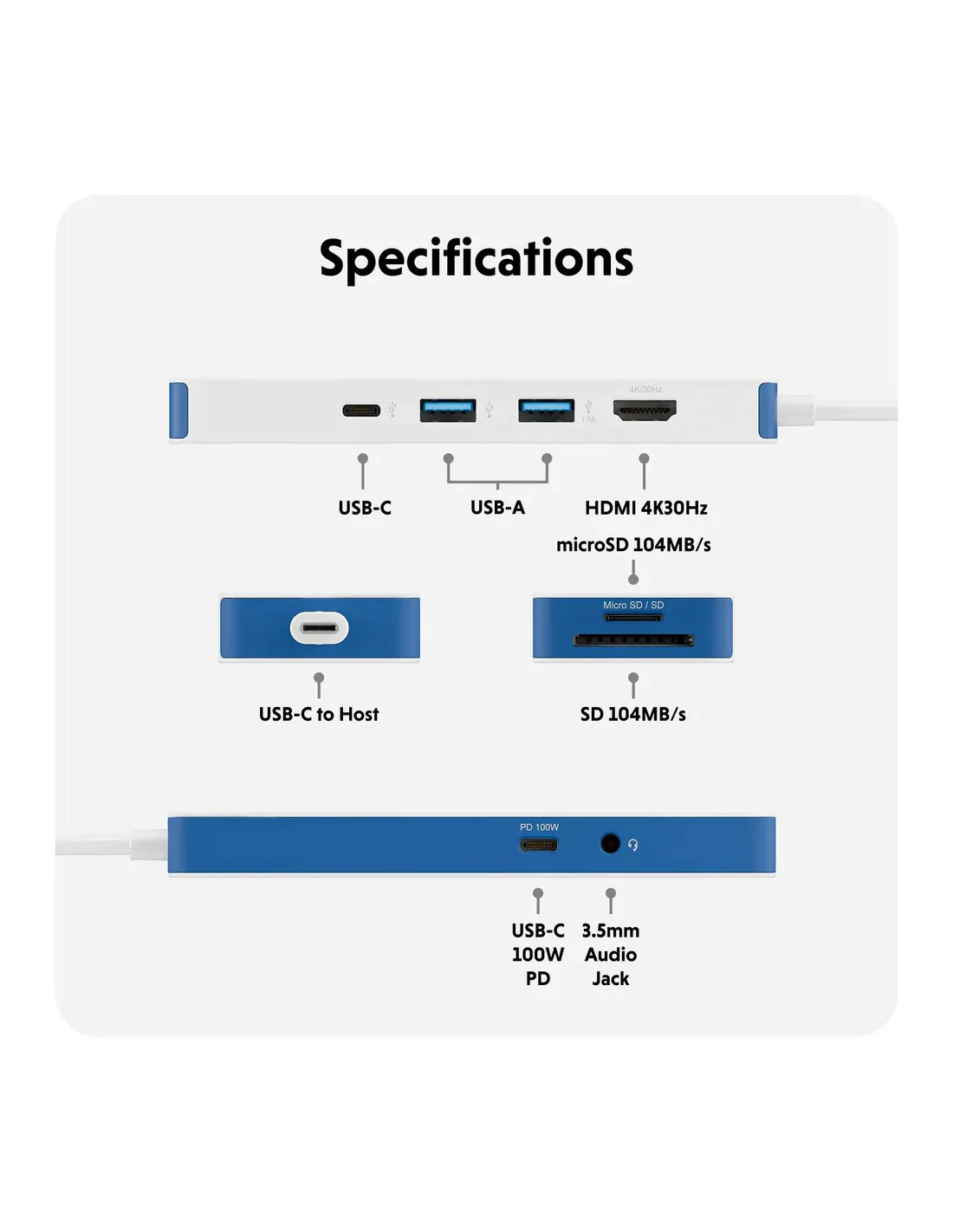 Hyper HyperDrive Flex 8 Port USB-C Hub, White/Blue | HD4102BUGL | HDMI ports quantity 1