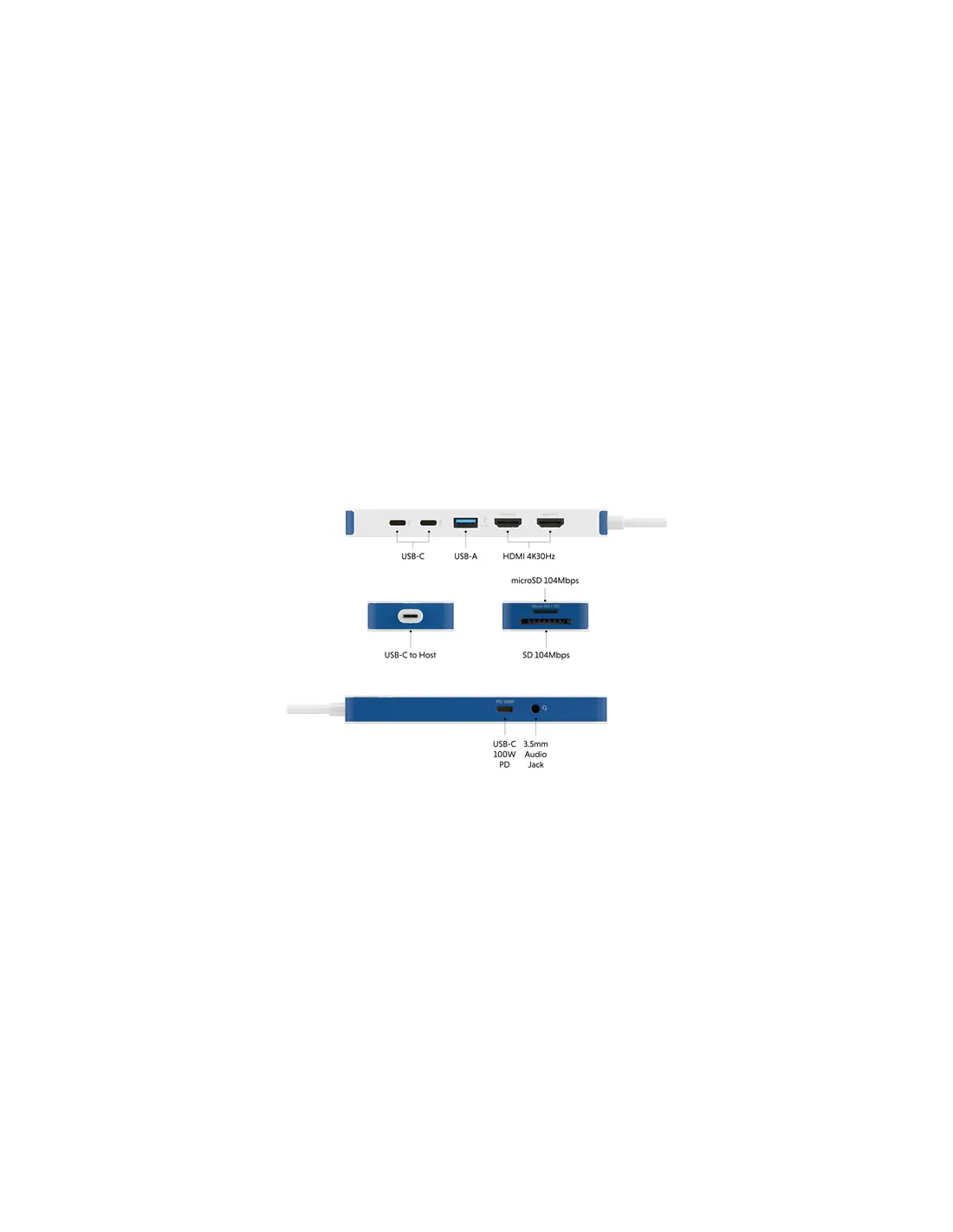 Hyper HyperDrive Flex 9 Port Dual 4K HDMI Dock, White/Blue | HD4103BUGL | HDMI ports quantity 2