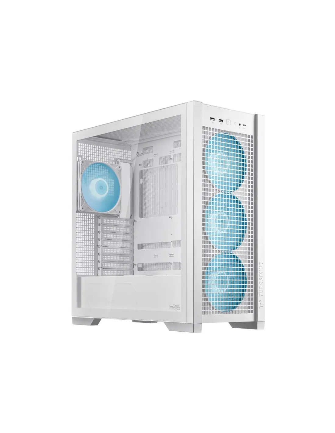 - ASUS TUF GAMING GT302 ARGB. FORM FACTOR: MIDI TOWER, TYPE: PC, PRODUCT COLOUR: WHITE. POWER SUPPLY LOCATION: BOTTOM. FRONT FANS INSTALLED: 3X 140 MM, FRONT FANS DIAMETERS SUPPORTED: 140 MM, REAR FANS INSTALLED: 1X 140 MM. SUPPORTED HDD SIZES: 2.5,3.5". WI