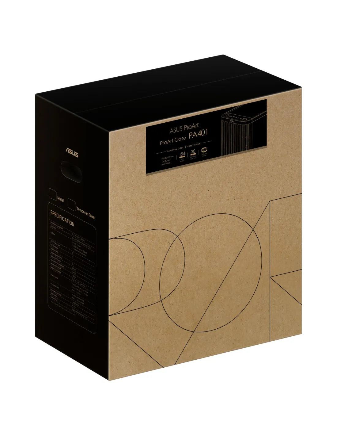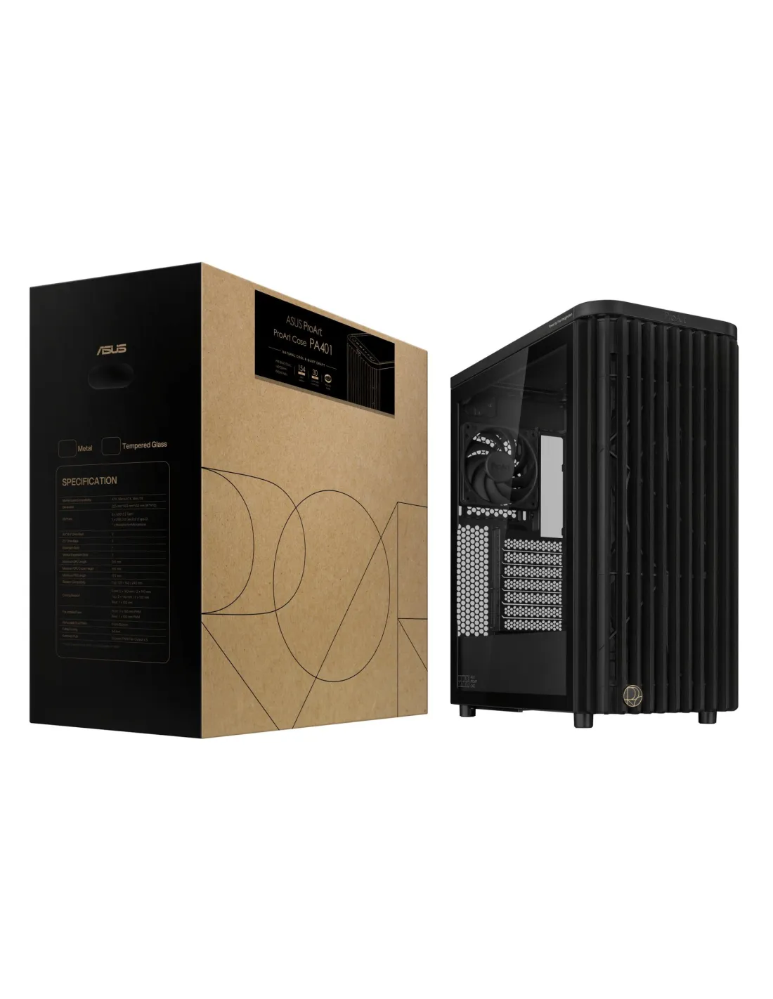 ProArt PA401 Wood Edition - Tempered Glass Panel , PC , Tower , Black , Material Tempered glass , Supported mainboards ATX , 7xNumber of expansion slots , Side window Yes , Supported HDD sizes 2.5/3.5 " , Weight 8.61 kg