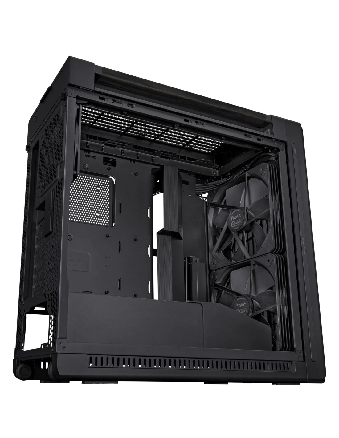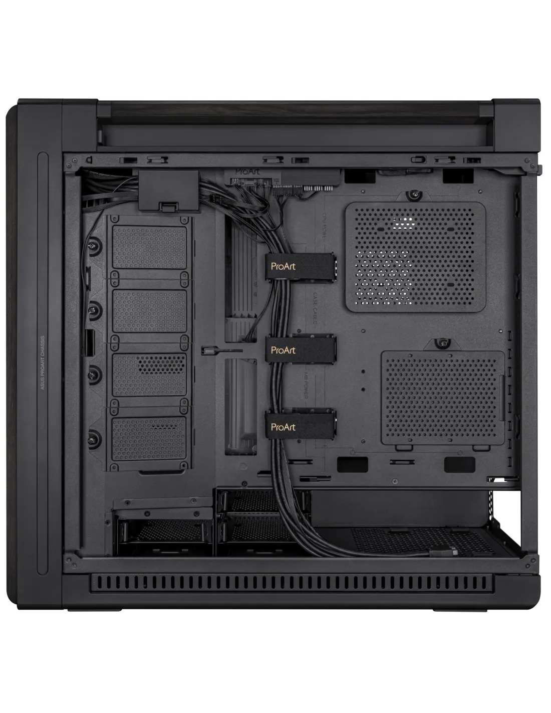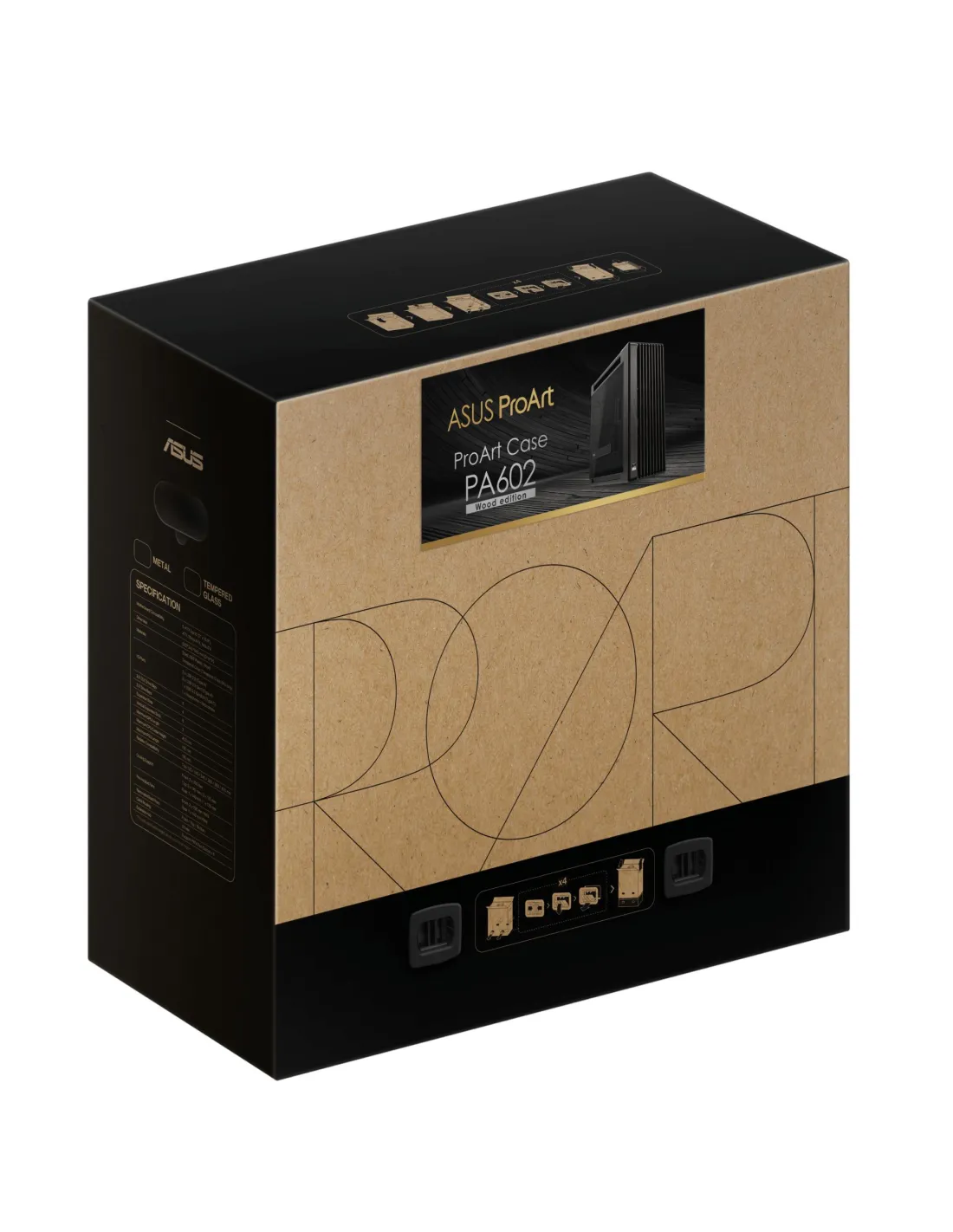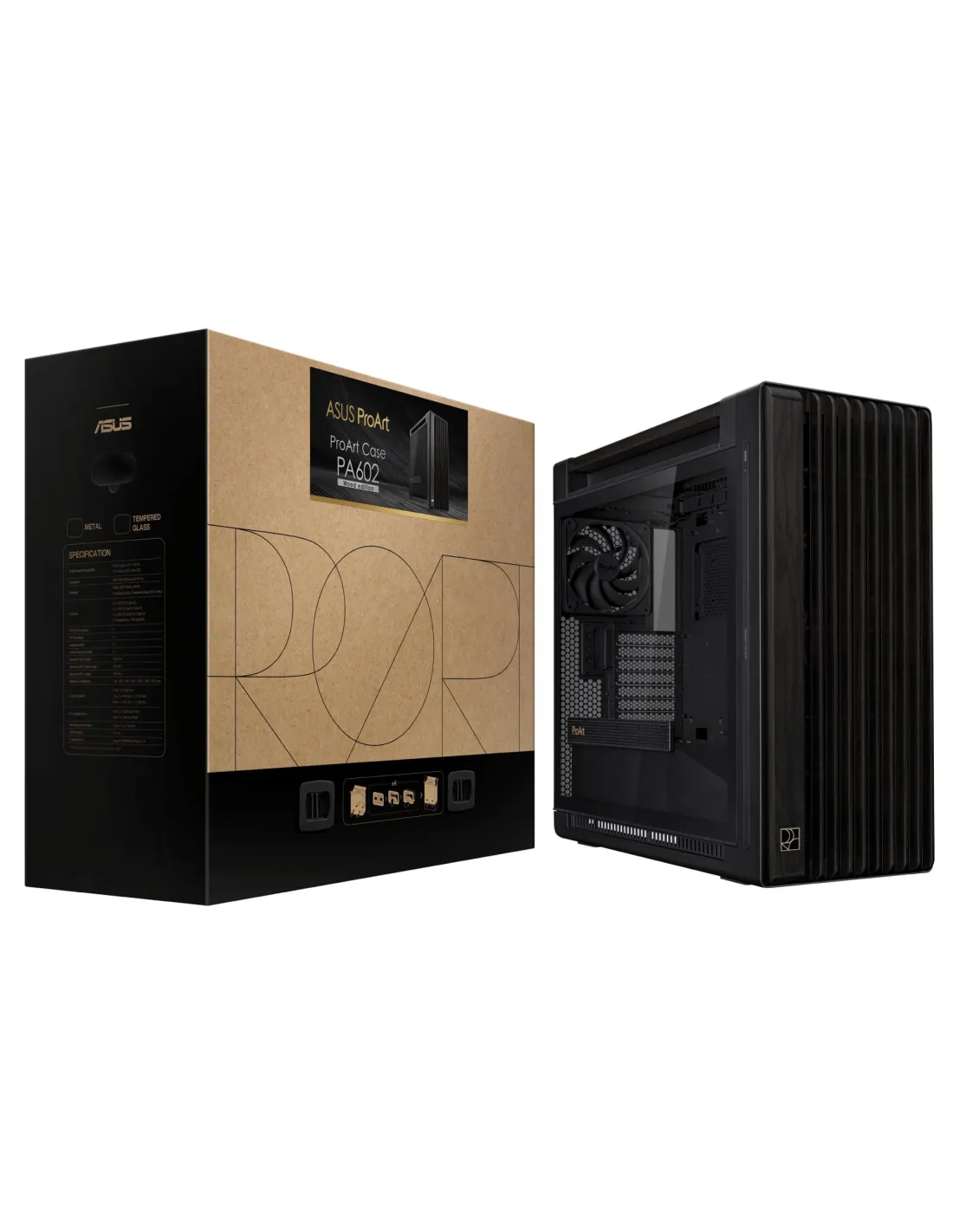 - ASUS PROART PA602 WOOD EDITION. FORM FACTOR: MIDI TOWER, TYPE: PC, PRODUCT COLOUR: BLACK. FRONT FANS INSTALLED: 2X 200 MM, FRONT FANS DIAMETERS SUPPORTED: 200 MM, REAR FANS INSTALLED: 1X 140 MM. SUPPORTED HDD SIZES: 2.5,3.5". WIDTH: 560 MM, DEPTH: 245 MM,