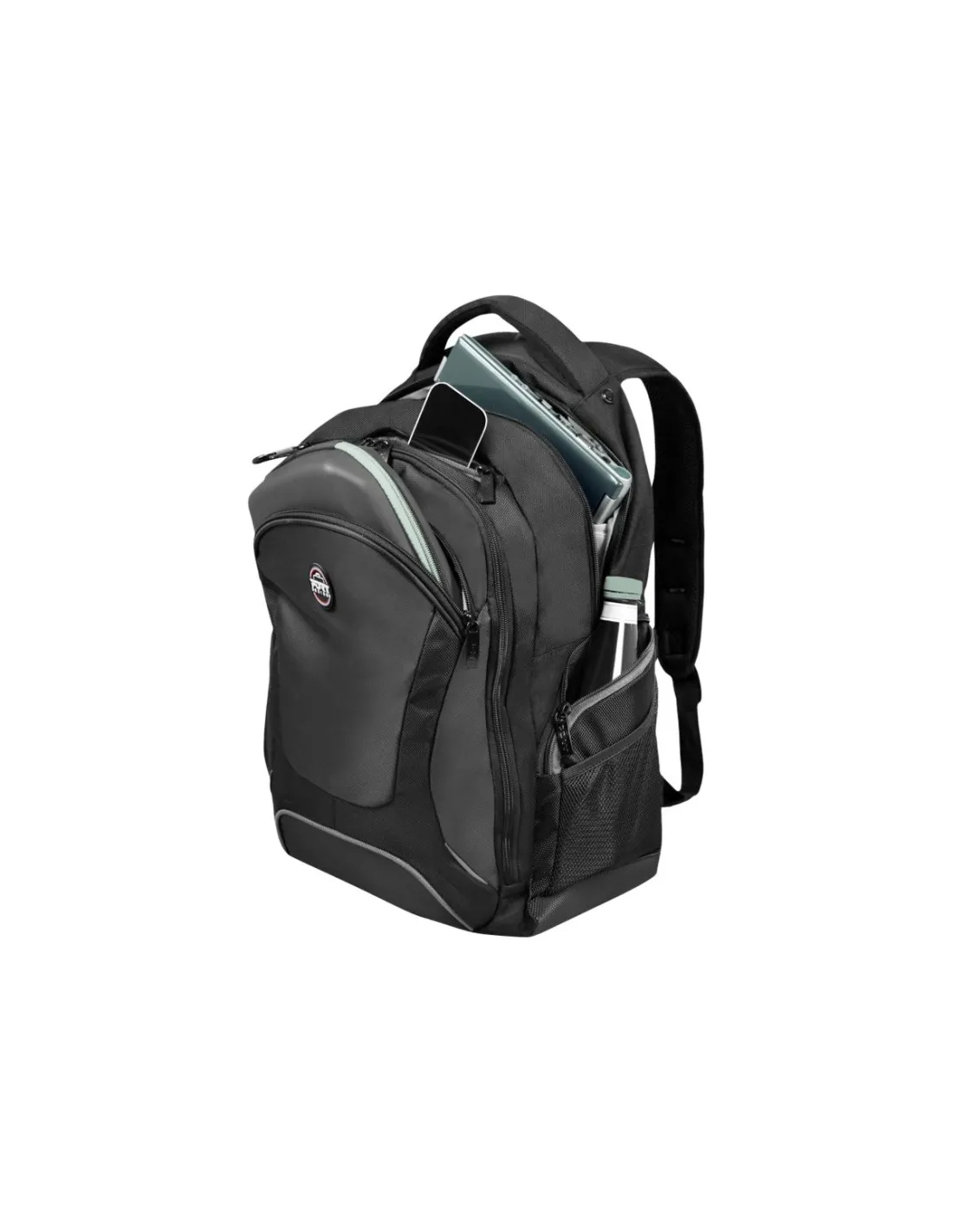 - PADDED LAPTOP COMPARTMENT WITH DEDICATED POCKET FOR TABLET UP TO 10,1 LARGE FRONT COMPARTMENT FOR DOCUMENT WITH ORGANIZER LARGE FRONT POCKET FOR ACCESSORIES RAIN COVER 2 ZIPPED SIDE POCKETS SIDE MESH POCKET PADDED BOTTOM/SHOULDERS AND BACK RUGGED BOTTOM P