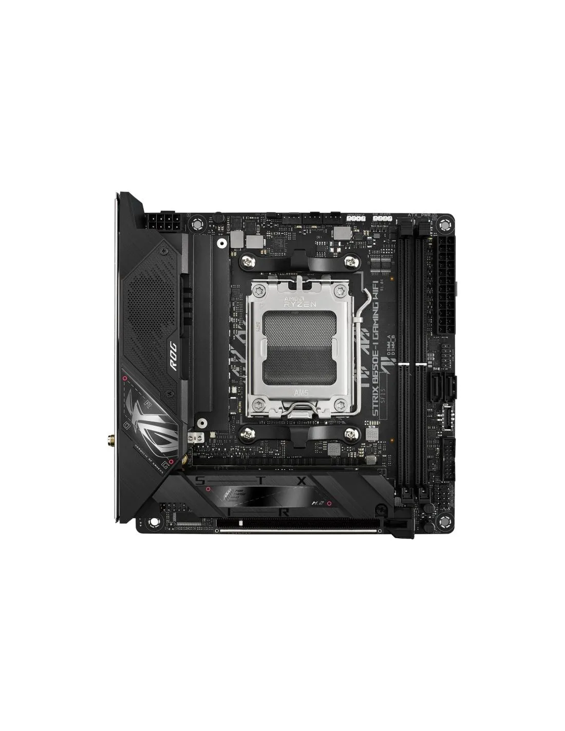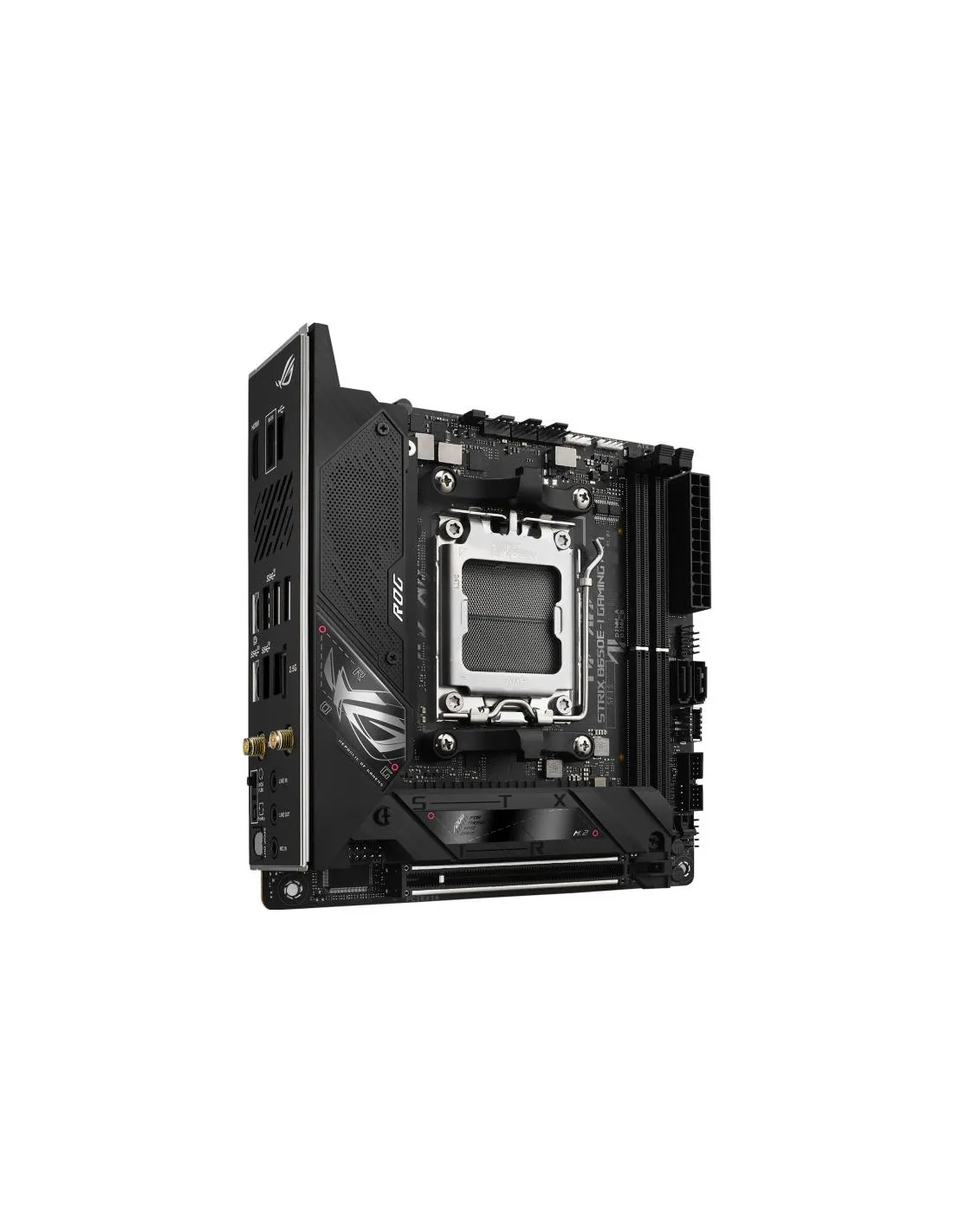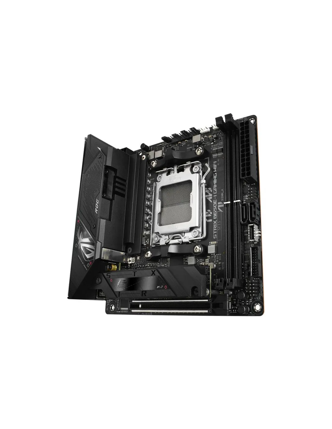 - ASUS ROG STRIX B650E-I GAMING WIFI. PROCESSOR MANUFACTURER: AMD, PROCESSOR SOCKET: SOCKET AM5, COMPATIBLE PROCESSOR SERIES: AMD RYZEN 7. SUPPORTED MEMORY TYPES: DDR5-SDRAM, MAXIMUM INTERNAL MEMORY: 64 GB, MEMORY SLOTS TYPE: DIMM. SUPPORTED STORAGE DRIVE I