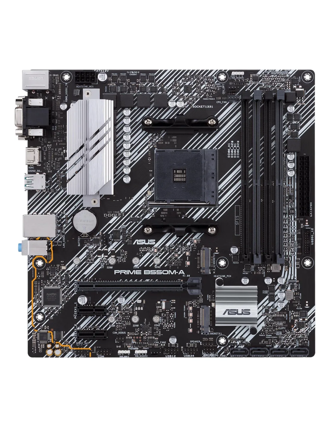 - ASUS PRIME B550M-A. PROCESSOR MANUFACTURER: AMD, PROCESSOR SOCKET: SOCKET AM4, COMPATIBLE PROCESSOR SERIES: AMD RYZEN 3000 SERIES. SUPPORTED MEMORY TYPES: DDR4-SDRAM, MAXIMUM INTERNAL MEMORY: 128 GB, MEMORY SLOTS TYPE: DIMM. SUPPORTED STORAGE DRIVE INTERF