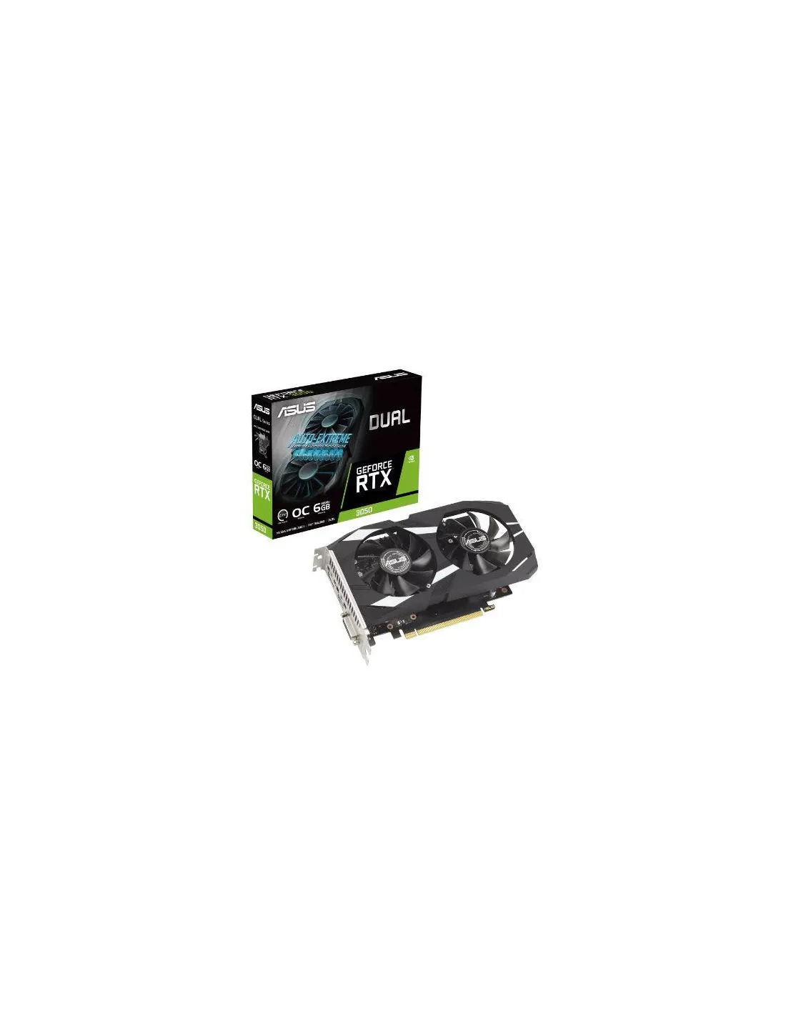 - ASUS DUAL -RTX3050-O6G. GRAPHICS PROCESSOR FAMILY: NVIDIA, GRAPHICS PROCESSOR: GEFORCE RTX 3050. DISCRETE GRAPHICS CARD MEMORY: 6 GB, GRAPHICS CARD MEMORY TYPE: GDDR6, MEMORY BUS: 96 BIT. MAXIMUM RESOLUTION: 7680 X 4320 PIXELS. DIRECTX VERSION: 12 ULTIMAT