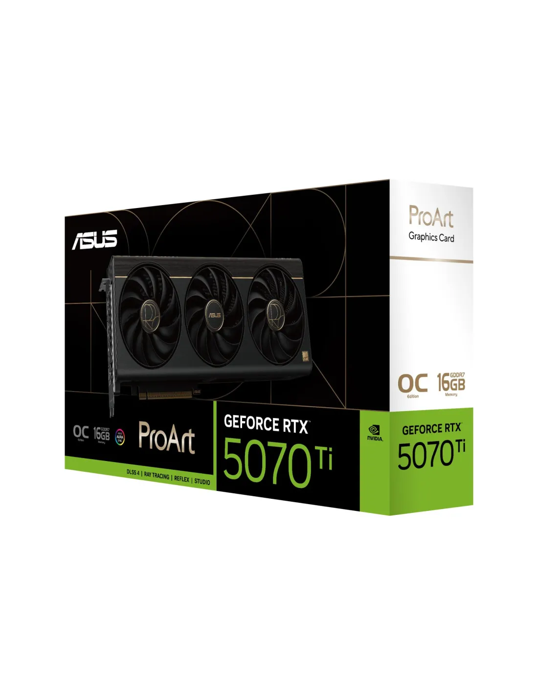 - ASUS PROART -RTX5070TI-O16G. GRAPHICS PROCESSOR FAMILY: NVIDIA, GRAPHICS PROCESSOR: GEFORCE RTX 5070 TI. DISCRETE GRAPHICS CARD MEMORY: 16 GB, GRAPHICS CARD MEMORY TYPE: GDDR7, MEMORY BUS: 256 BIT. MAXIMUM RESOLUTION: 7680 X 4320 PIXELS. OPENGL VERSION: 4
